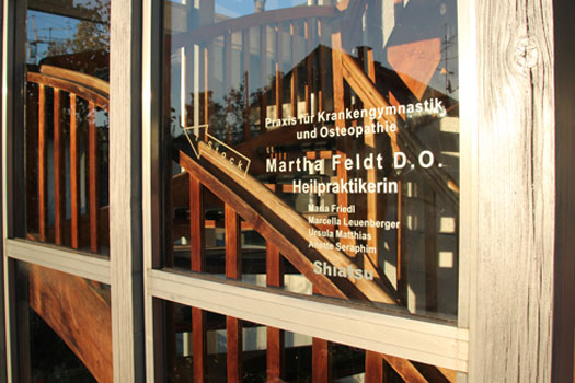 Mehr erfahrenDie Praxis wurde 1978 in Weßling am See von Martha Feldt gegründet. Neben den Schwerpunkten Osteopathie und Shiatsu gehört die Physiotherapie zu unserem Angebot. Eine interaktive Arbeit unter den fünf Therapeuten ist durch eine fundierte Ausbildung und zeitgemäße Fortbildung gewährleistet.